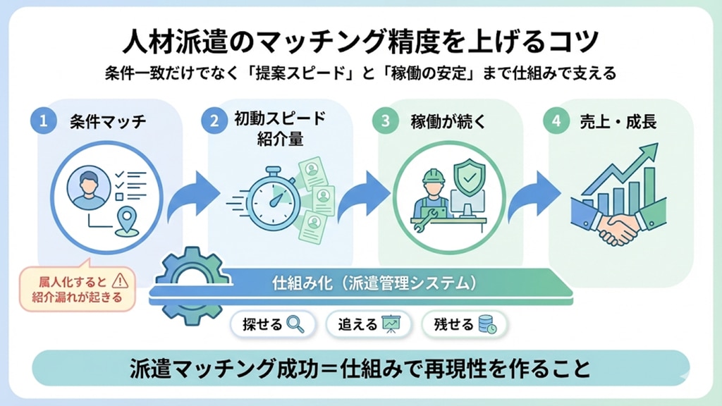 人材派遣のマッチング精度を上げるコツと、マッチング機能が充実した派遣管理システムを紹介